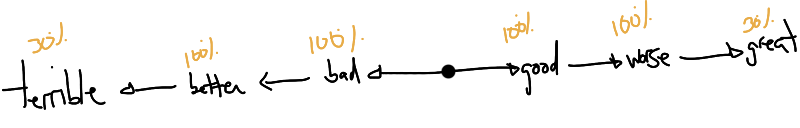 Or maybe, it is this. We keep both meanings around because at the end of the day, it doesn’t really matter. Just right, too much, never quite enough... At least we are not static. We are in motion, and that is good. Even if at some point, we are forced to turn around.